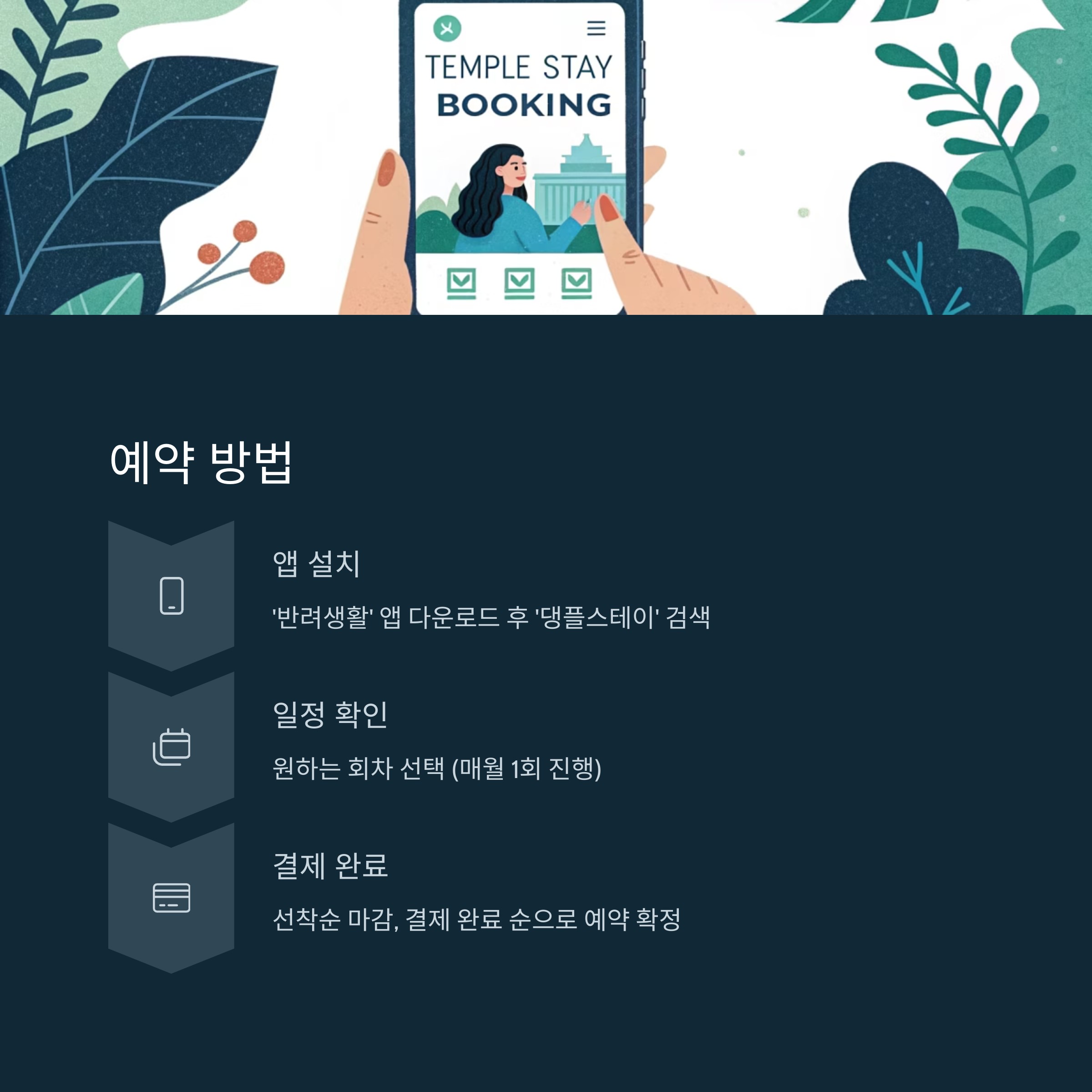 미륵사 댕플스테이 예약은 '반려생활' 앱을 통해서만 가능합니다. 다른 예약 채널은 현재 없으니 참고하시기 바랍니다.