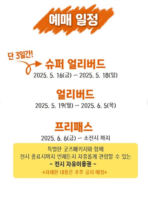 - 전시 기간 및 예매 일정, 전시 구성 등은 주최 측 사정에 따라 변경될 수 있습니다.
