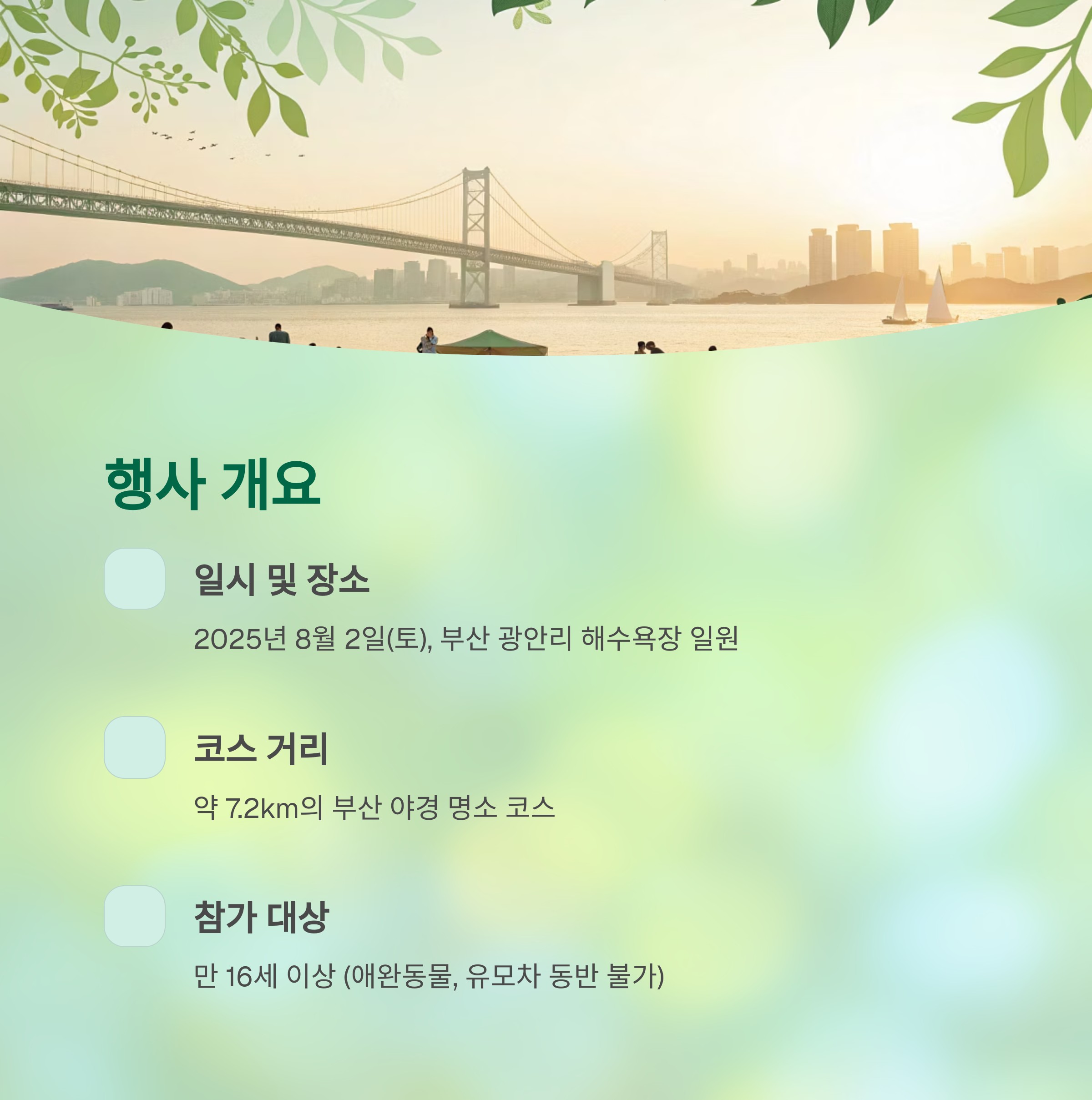 | 16:00 | 참가자 집결 | 광안리해수욕장 |