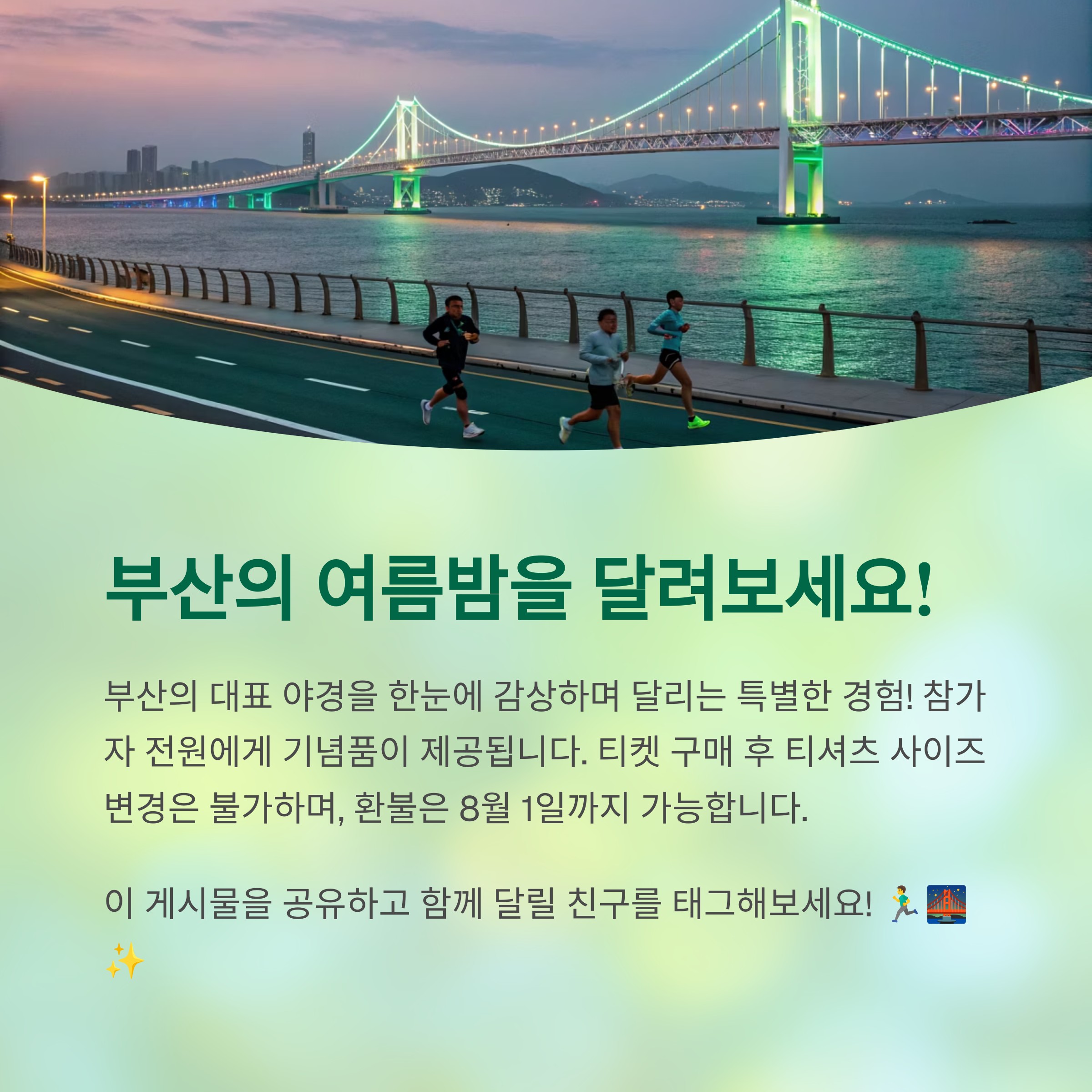 2025 나이트 레이스 인 부산은 단순한 러닝 이벤트를 넘어서, 부산의 아름다운 야경과 함께하는 특별한 경험입니다. 특히 광안대교 상층을 달리는 경험은 평생 잊지 못할 추억이 될 것입니다.