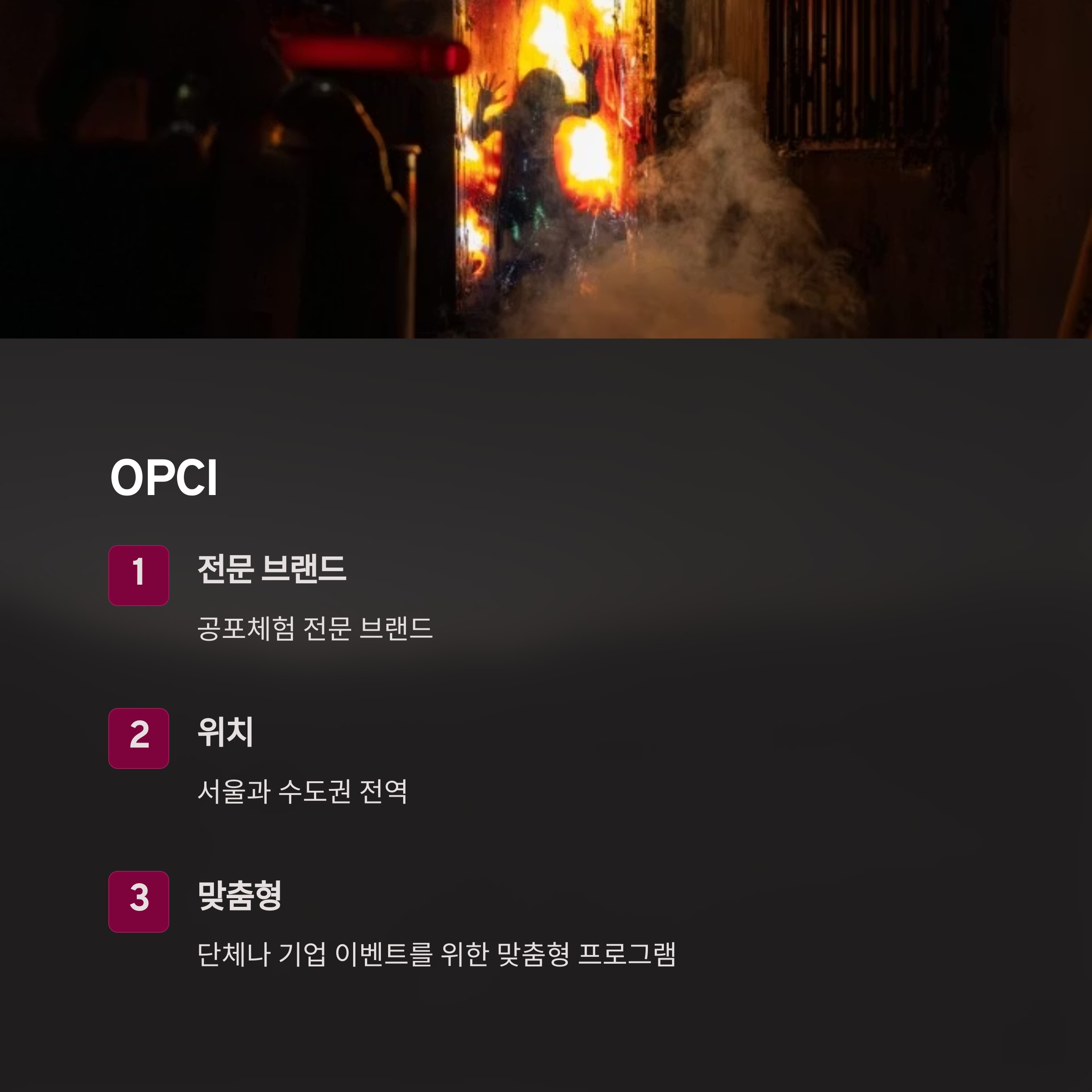서울과 수도권 전역에서 팝업과 상설 체험관을 운영하는 OPCI는 공포체험 전문 브랜드로 다양한 호러 테마와 미션형 체험을 제공합니다.
