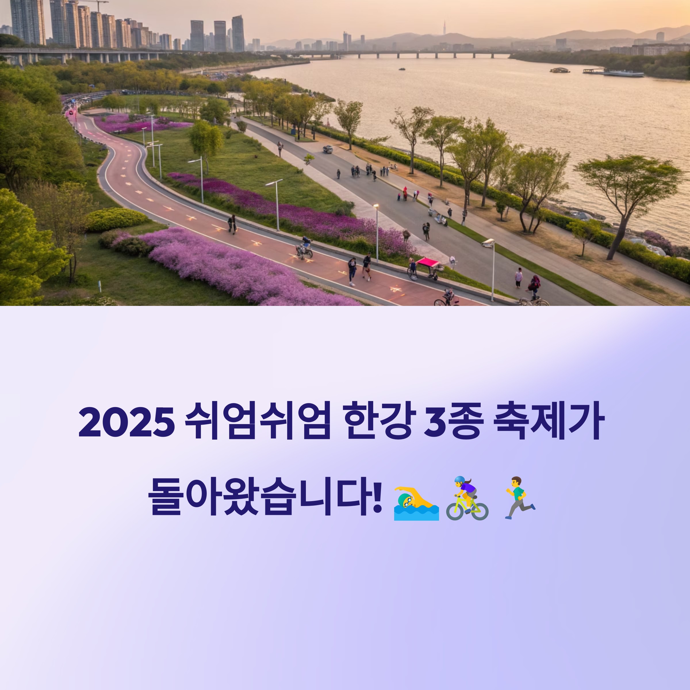 안녕하세요! 서울의 초여름을 더욱 활기차게 만들어줄 2025 제2회 쉬엄쉬엄 한강 3종 축제가 곧 개최됩니다. 작년 첫 행사의 성공에 힘입어 올해는 더욱 다양한 프로그램과 확장된 일정으로 돌아온 한강 3종 축제! 수영, 자전거, 달리기를 한강에서 즐기는 이 특별한 행사의 모든 정보를 완벽하게 정리해드립니다.