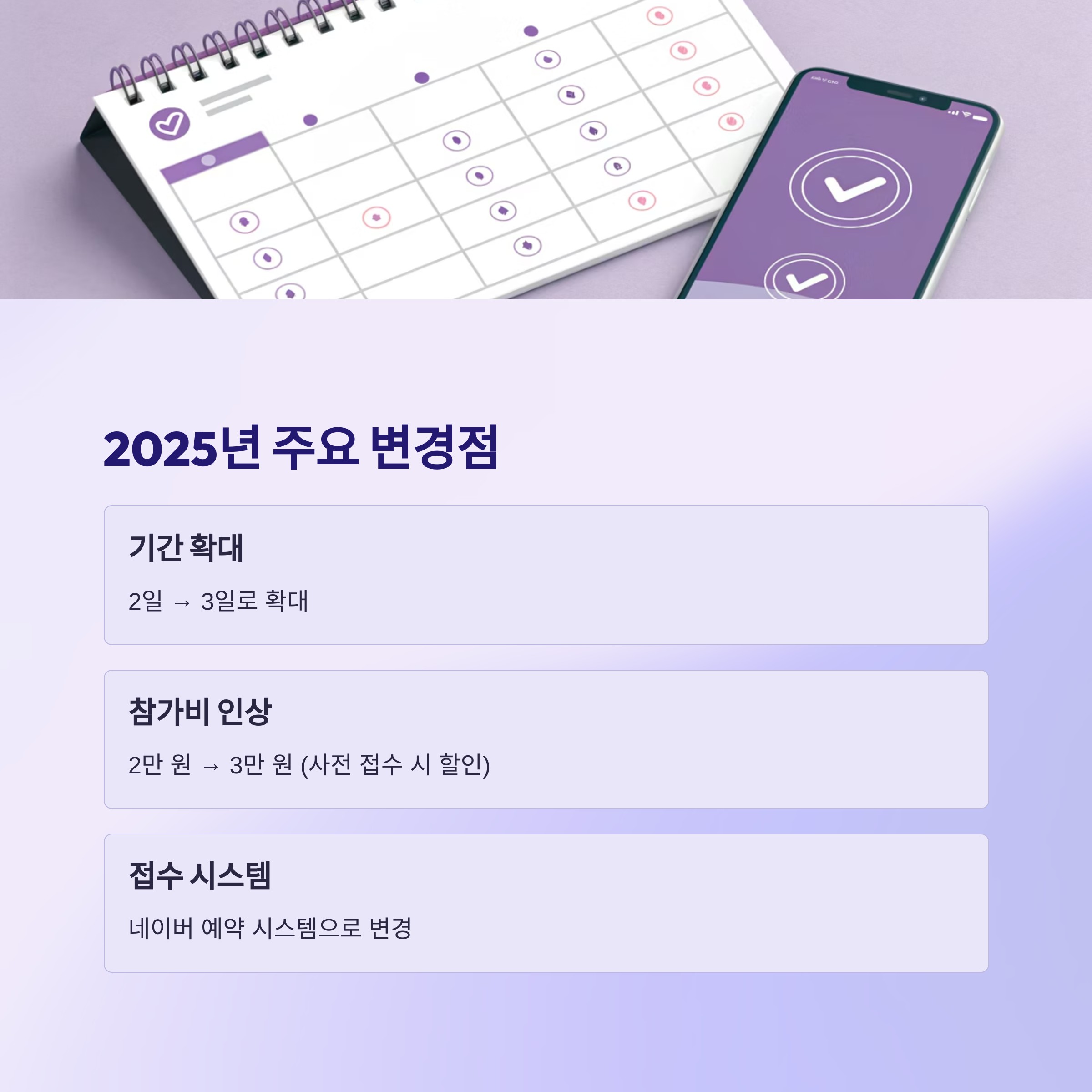 올해는 평일인 금요일까지 포함하여 총 3일간의 확장된 일정으로 진행됩니다. 덕분에 주말에 참여하기 어려운 직장인들도 금요일에 참여할 수 있는 기회가 생겼으며, 일별 참가자 수를 분산시켜 보다 쾌적한 환경에서 축제를 즐길 수 있게 되었습니다.