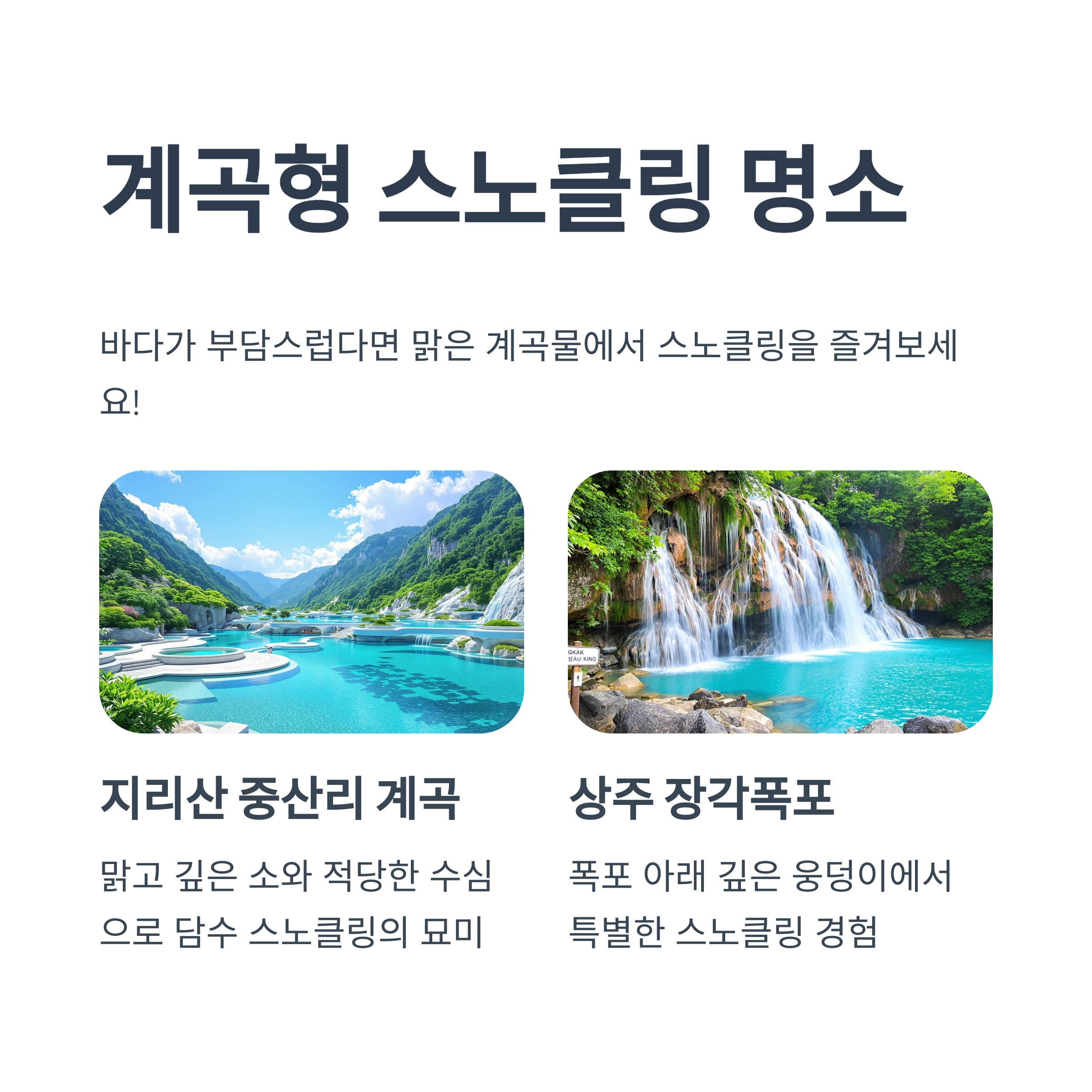 경상도는 바다와 계곡 모두에서 스노클링을 즐길 수 있는 최고의 여행지입니다. 자연과 함께 힐링하며 물속 생태계를 탐험하는 특별한 경험을 만들어보세요!
