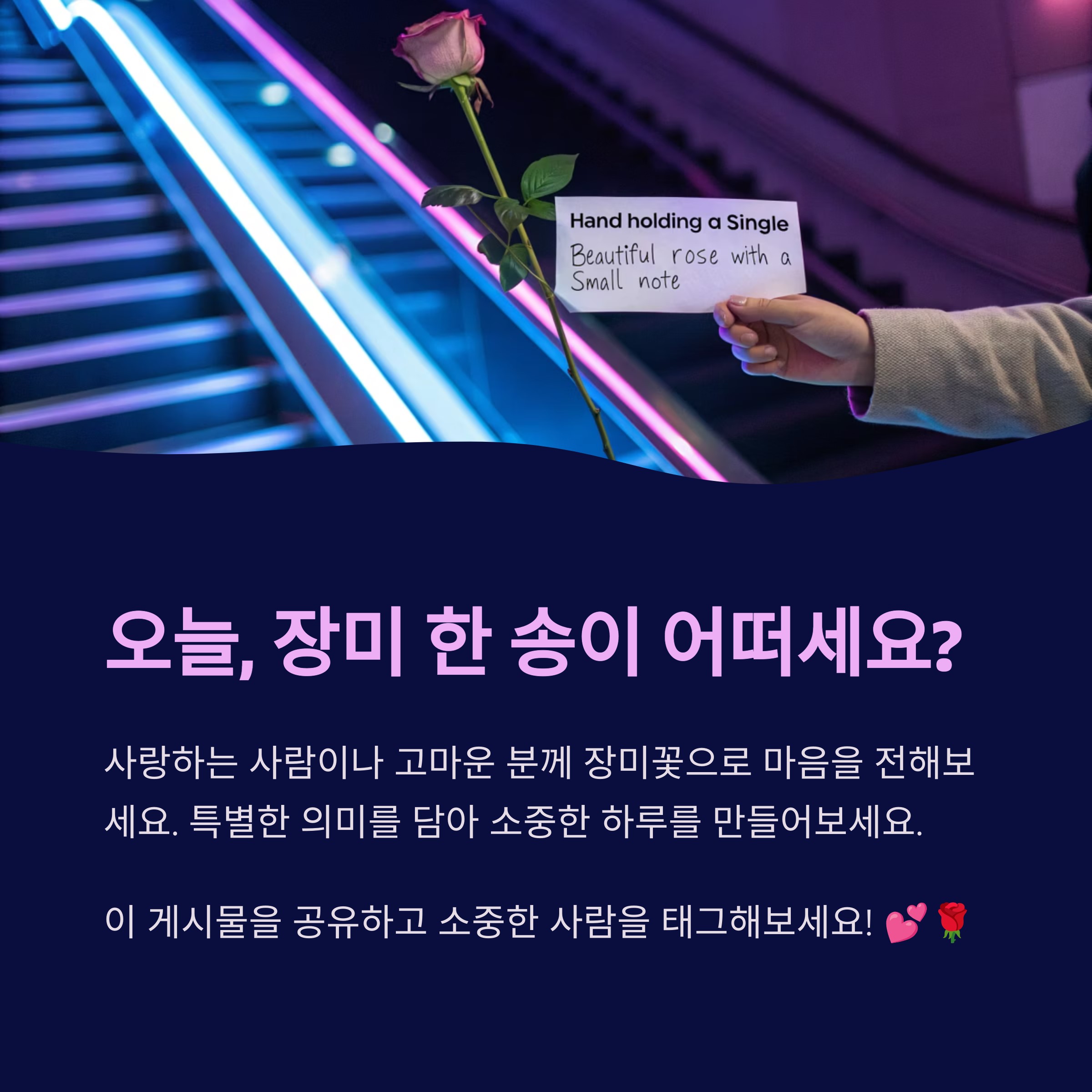장미는 단순한 꽃이 아닌 마음을 전하는 메신저입니다. 색상과 개수에 따라 다양한 의미를 담을 수 있어 더욱 특별한 선물이 될 수 있습니다. 로즈데이를 통해 평소에 표현하지 못했던 사랑과 감사의 마음을 전하고, 소중한 사람들과의 관계를 더욱 깊게 만드는 기회로 삼아보세요.
