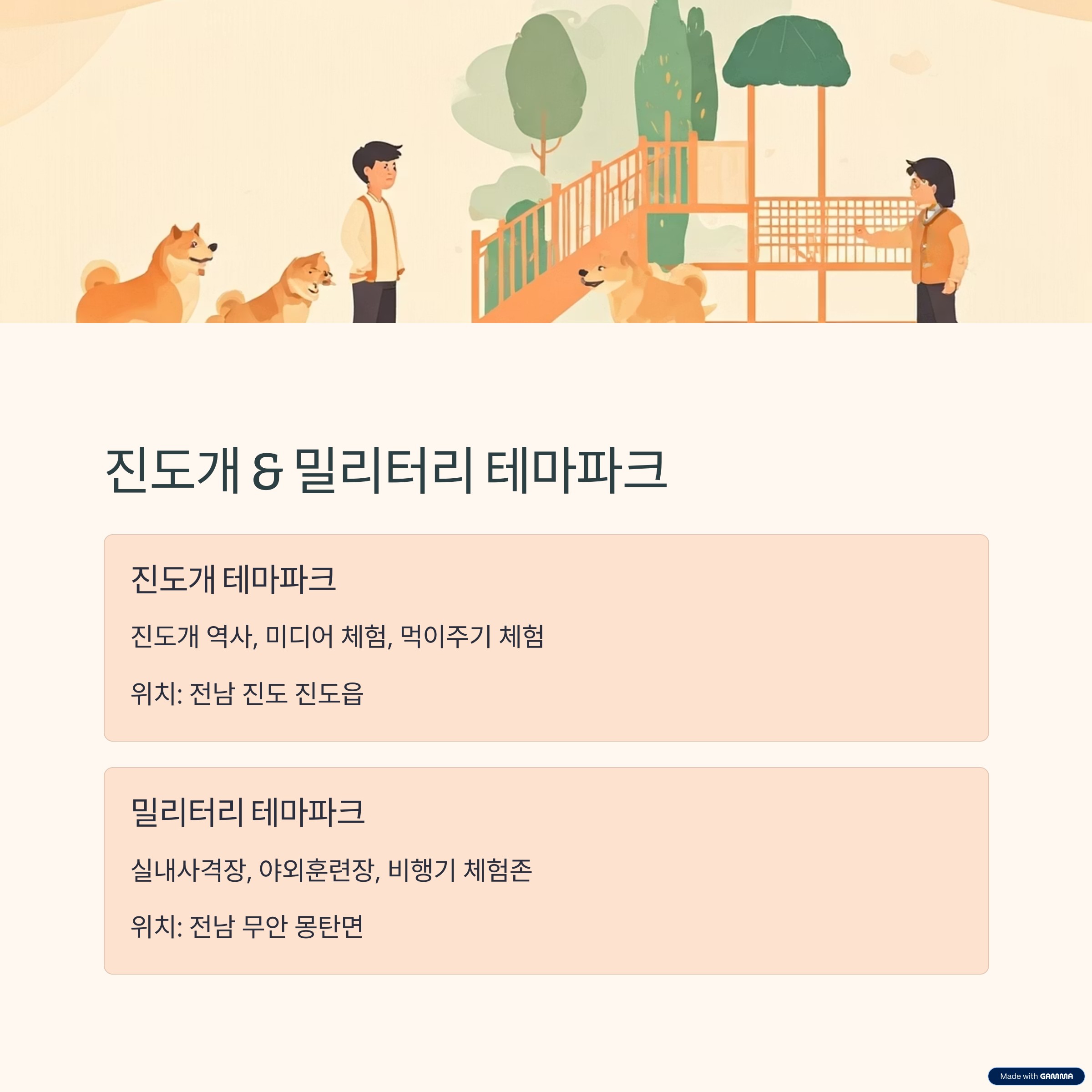 | 특징 | 진도개의 역사, 미디어 체험 및 먹이주기 체험도 가능 |
