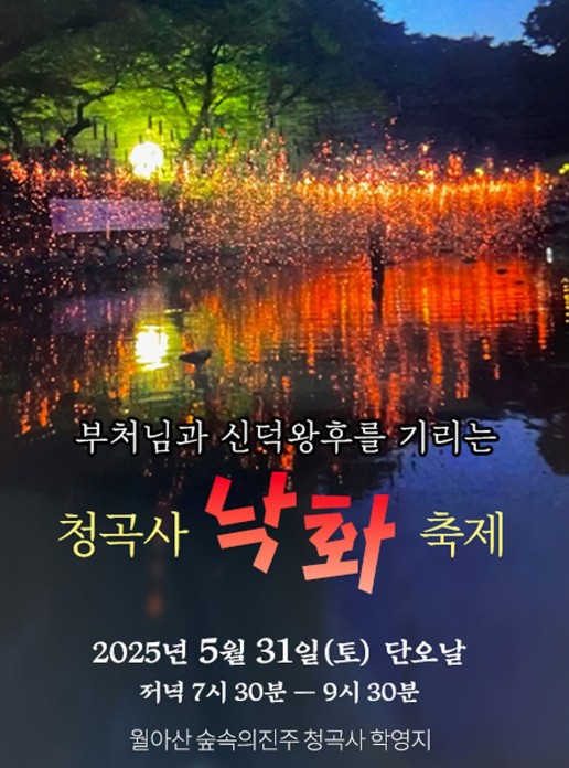 청곡사 낙화축제는 경상남도 진주시 금산면 월아산 자락에 위치한 천년고찰 청곡사에서 매년 단오날에 열리는 전통 불꽃놀이 행사입니다. 2025년에는 5월 31일(토) 단오날 저녁 7시 30분부터 9시 30분까지 성대하게 개최될 예정입니다.