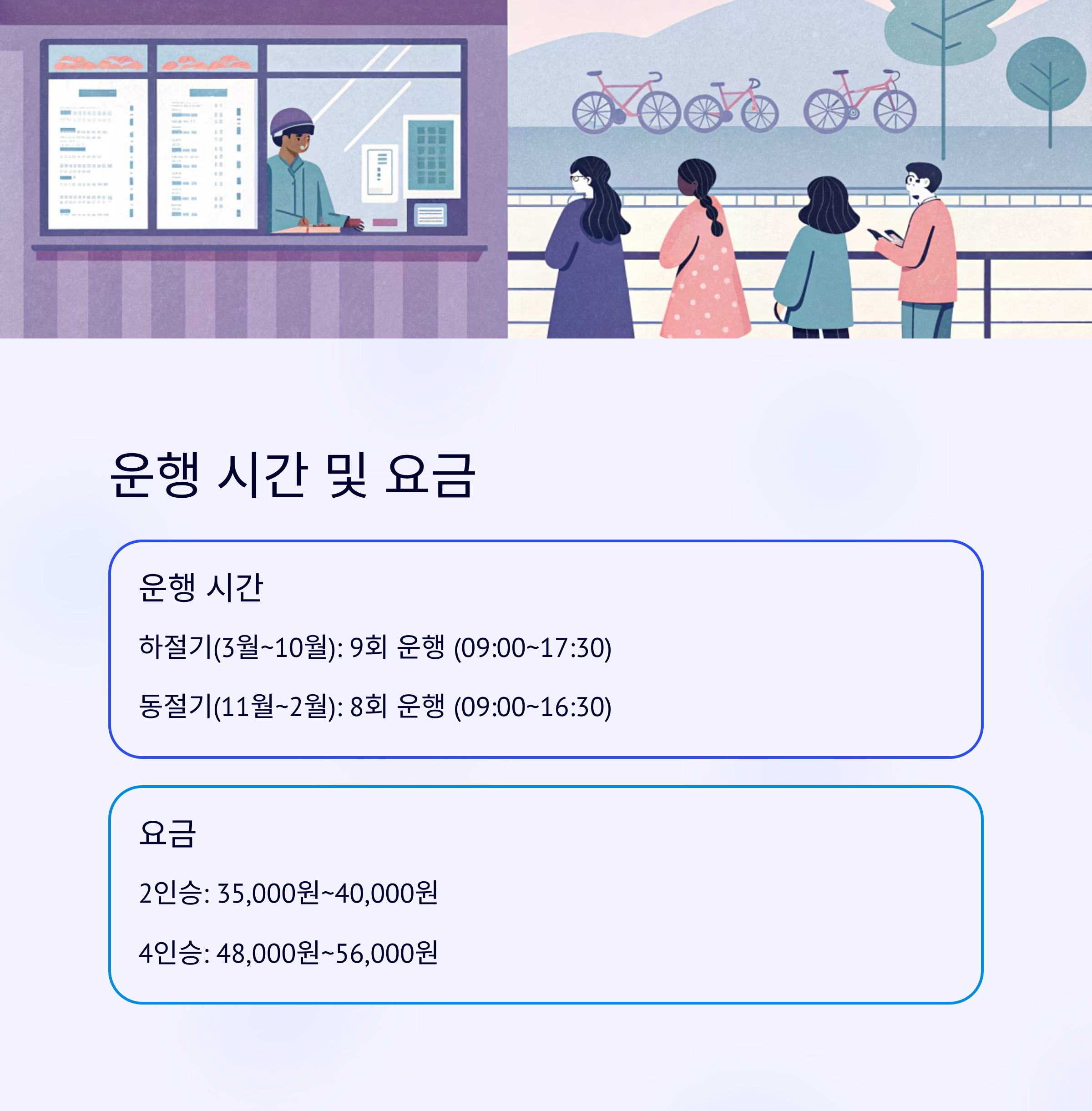 | 동절기 | 11월 1일 ~ 2월 28일 | 8회 운행 (09:00 ~ 16:30) |