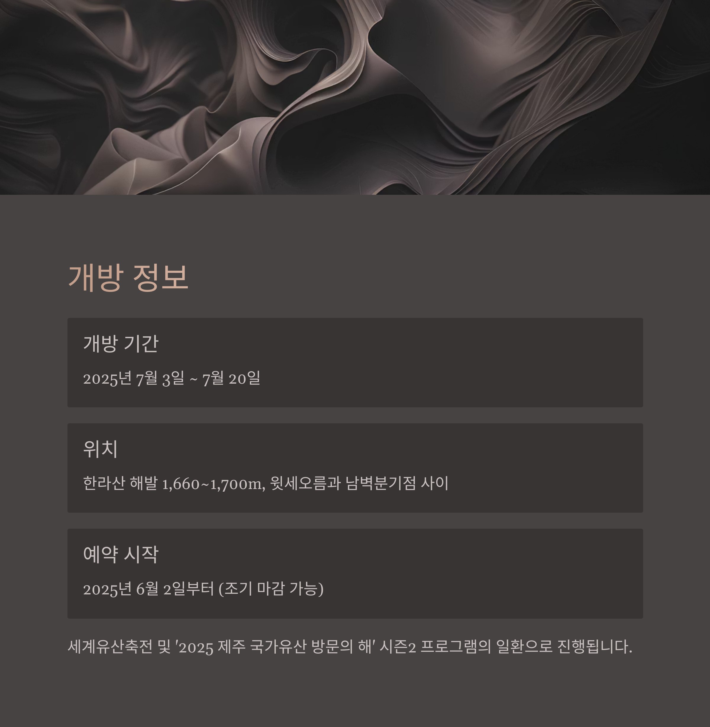 | 개방 목적 | 세계유산축전 및 '2025 제주 국가유산 방문의 해' 시즌2 프로그램 |