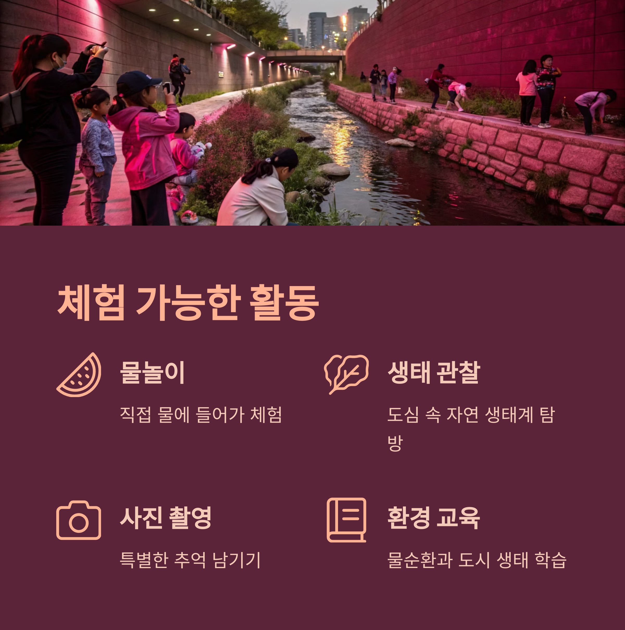 가족, 연인, 친구들과 함께 청계천에서 만나는 새로운 추억을 만들어보세요!