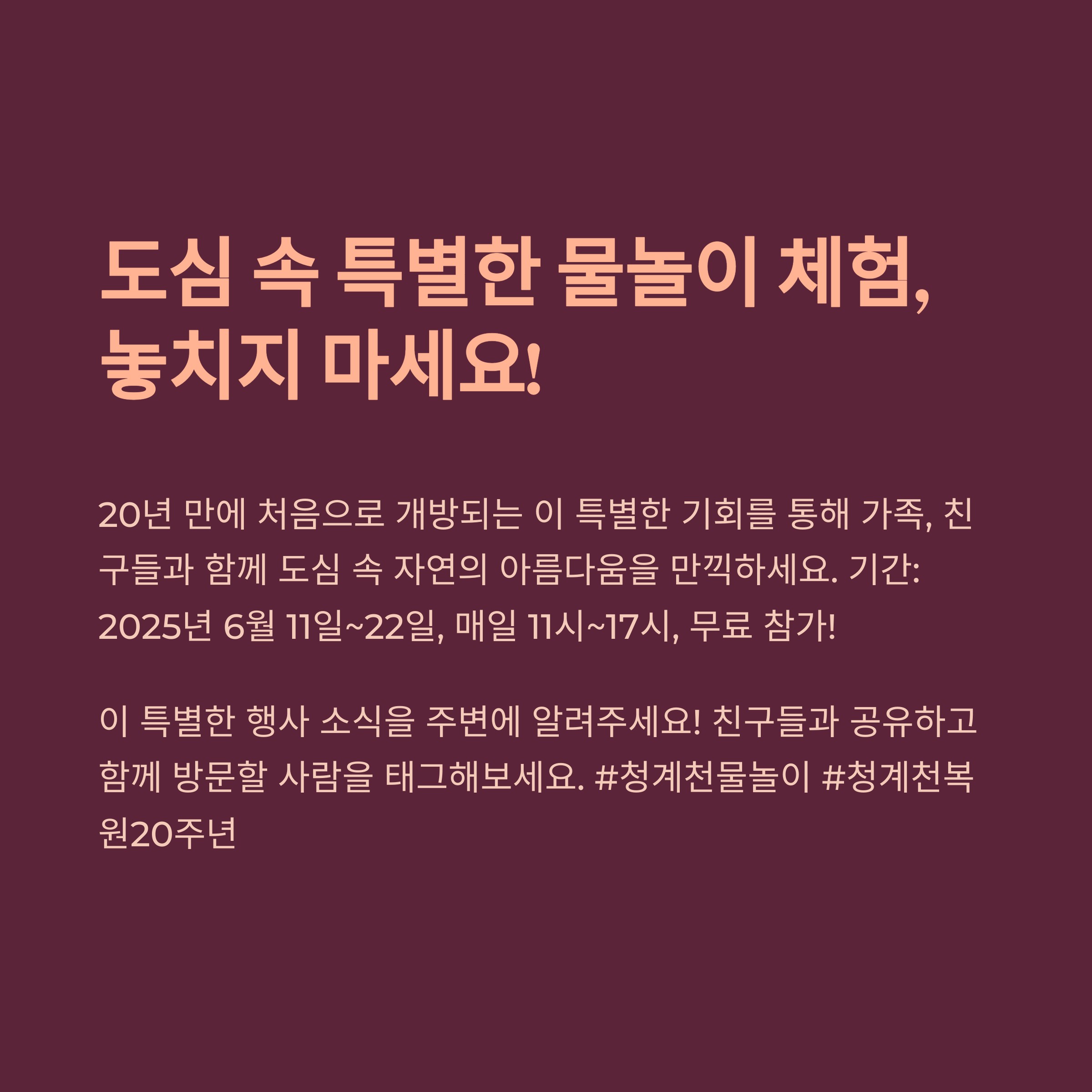 🎉 청계천 복원 20주년 기념 특별 이벤트 🎉
