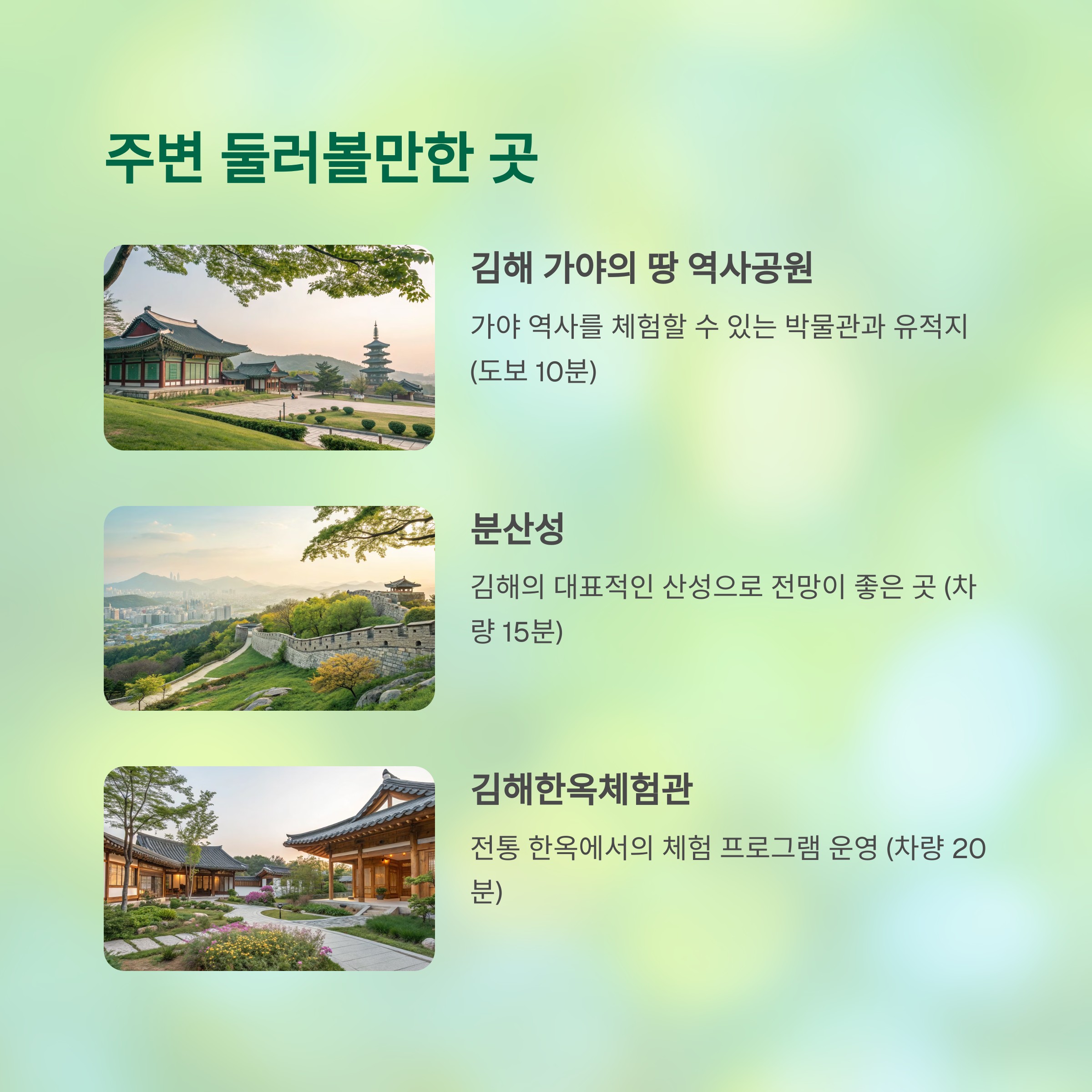 김해가야테마파크를 방문하는 김에 주변의 다른 명소들도 함께 둘러보면 좋습니다.
