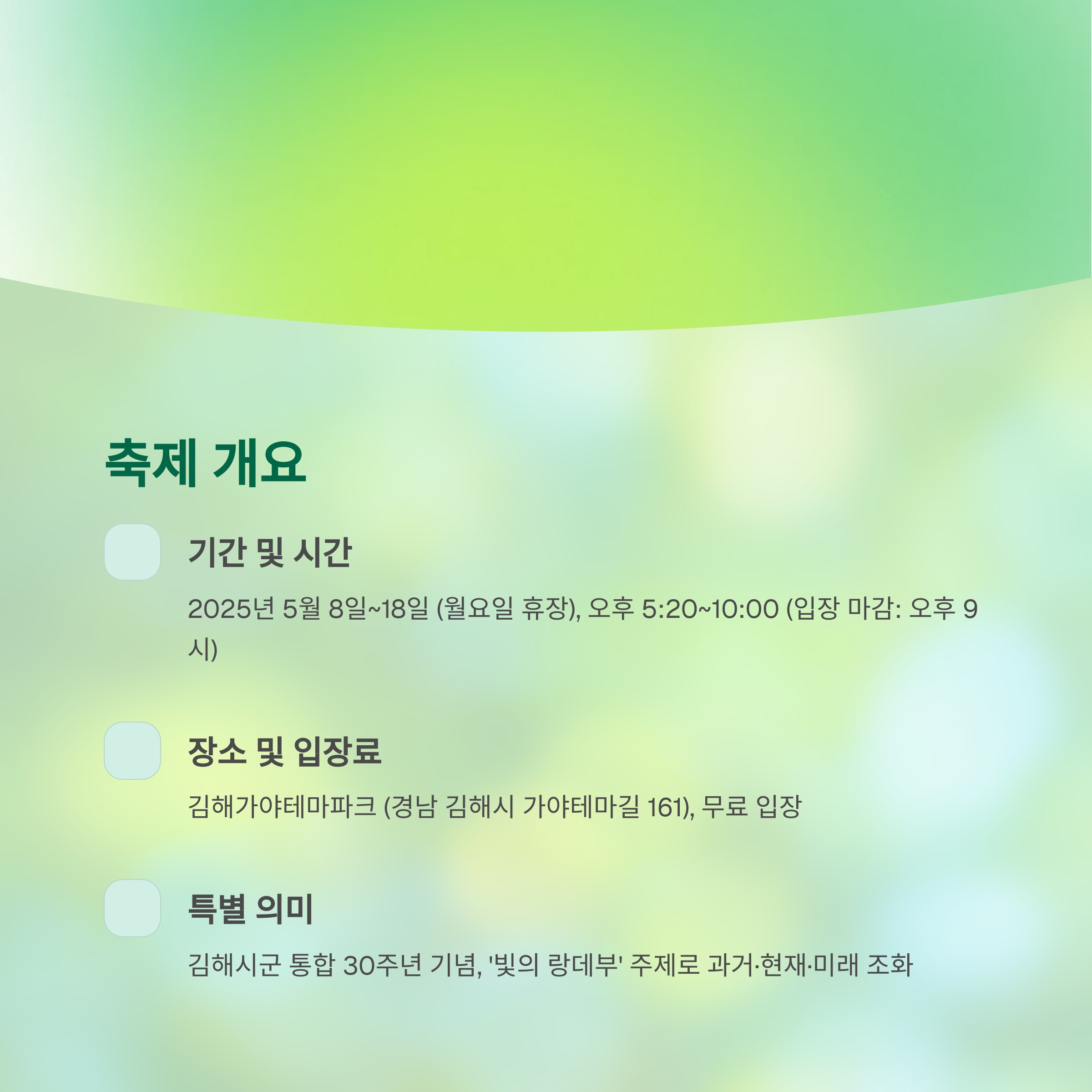 - 행사명: 2025 김해 가야축제 빛 축제 '영원'
