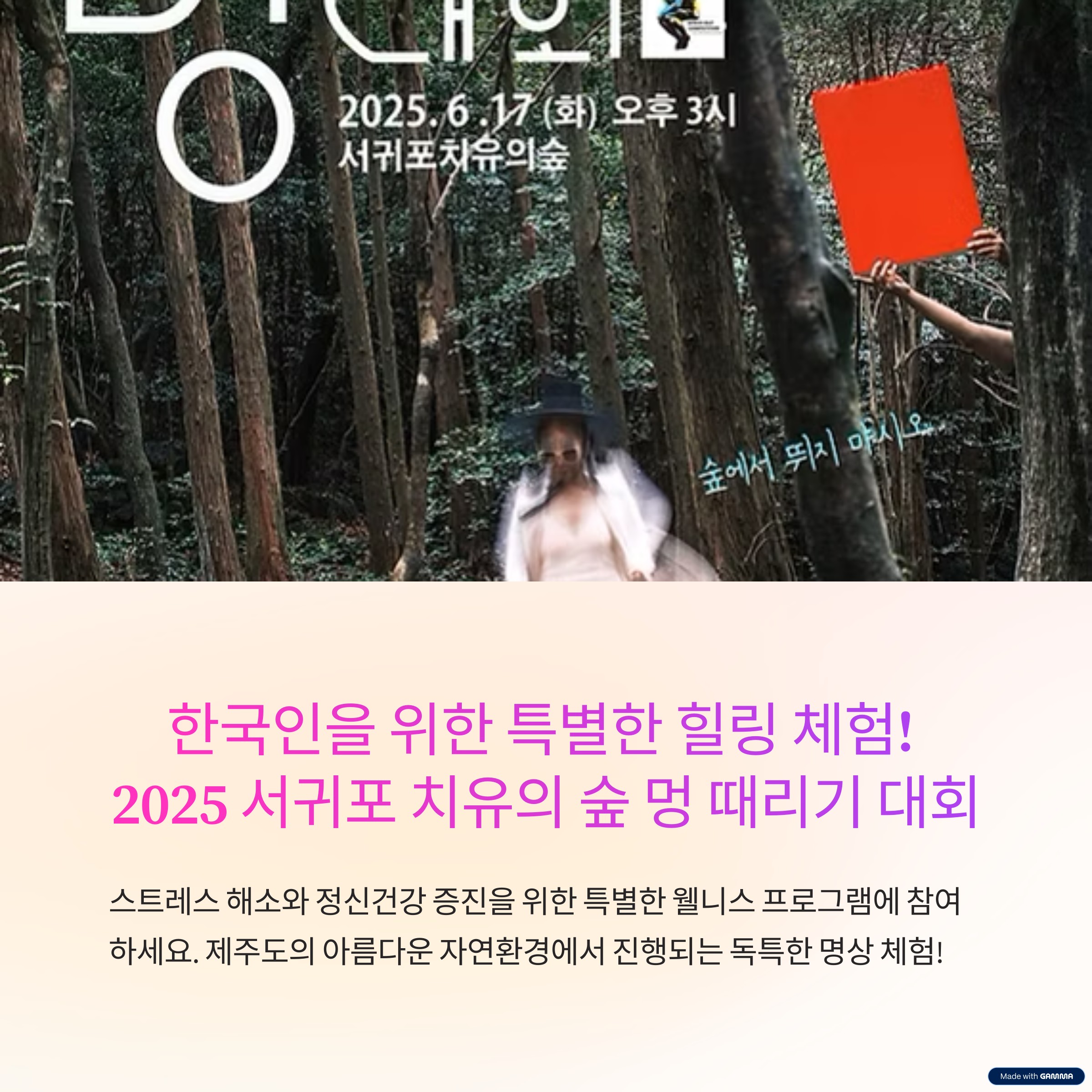 | 행사명 | 2025 서귀포 치유의 숲 명따리기 대회 | ESG 트렌드 반영 |